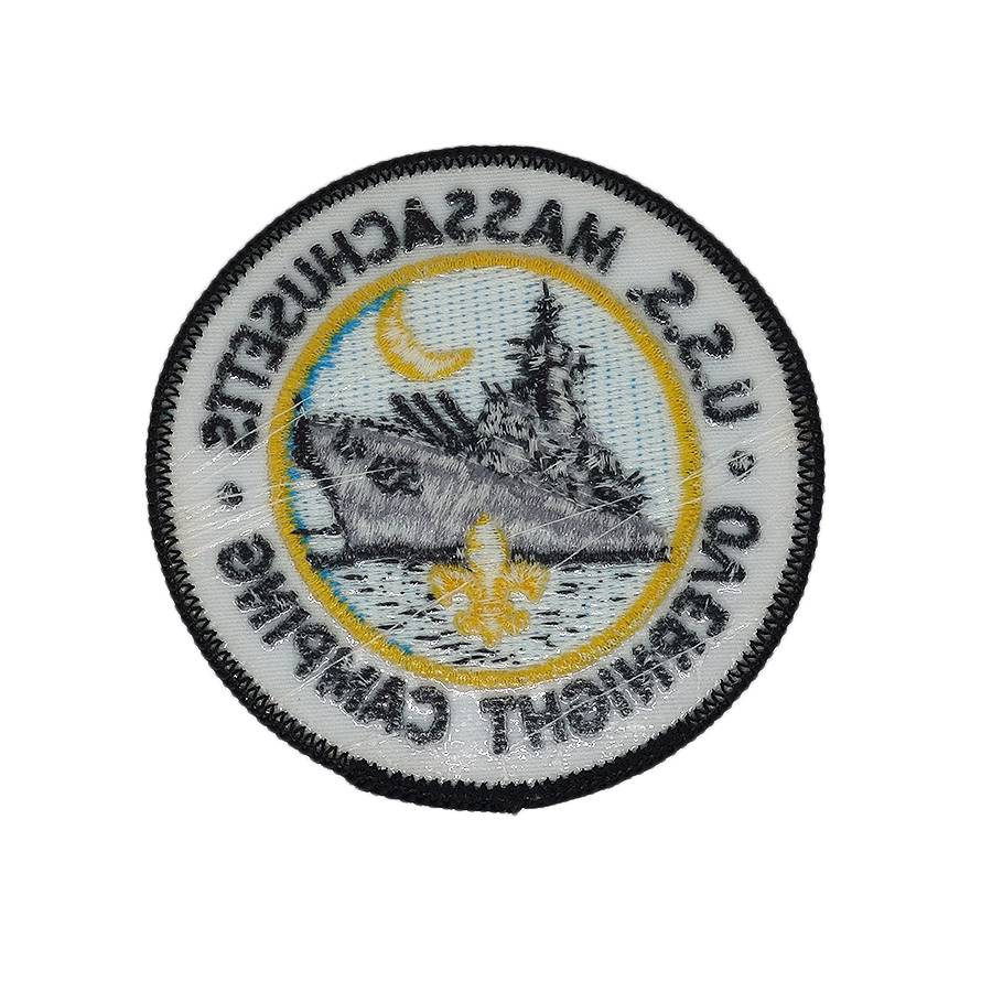 アメリカから入荷しました、ボーイスカウト ワッペン。 U.S.S. MASSACHUSETTS OVERNIGHT CAMPING。 縦 約7.8cm 横 約7.8cm 表面に、多少の擦れあります。