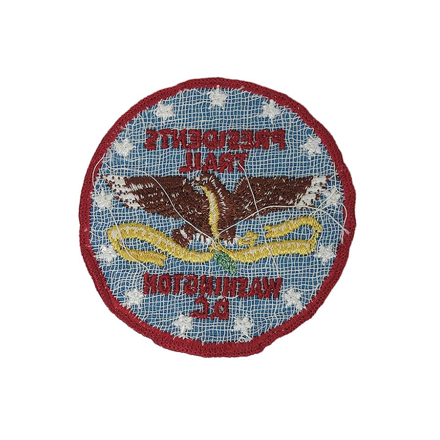 アメリカから入荷しました、ビンテージのボーイスカウト ワッペン。 PRESIDENTS TRAIL。 縦 約7.7cm 横 約7.7cm 表面に、擦れ・ヨレあります。
