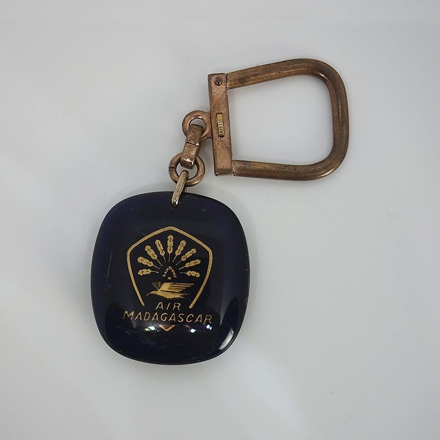 フランスで見つけた、Bourbon社のヴィンテージ キーホルダー。 マダガスカル航空 AIR MADAGASCAR。 約3.3cm×約3.1cm 表面に多少の擦れ・細かな軽い傷あります。