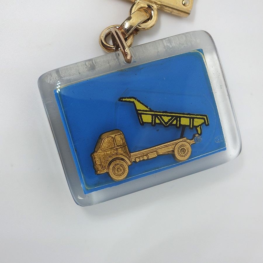 フランスで見つけた、Bourbon社のヴィンテージ キーホルダー。 ダンプカーの製造メーカー bennes marrel。 荷台が動きます。 約2.8m×約3.7cm 表面に多少の擦れ・小傷、後面上部周りにクモリ傷が見られます。