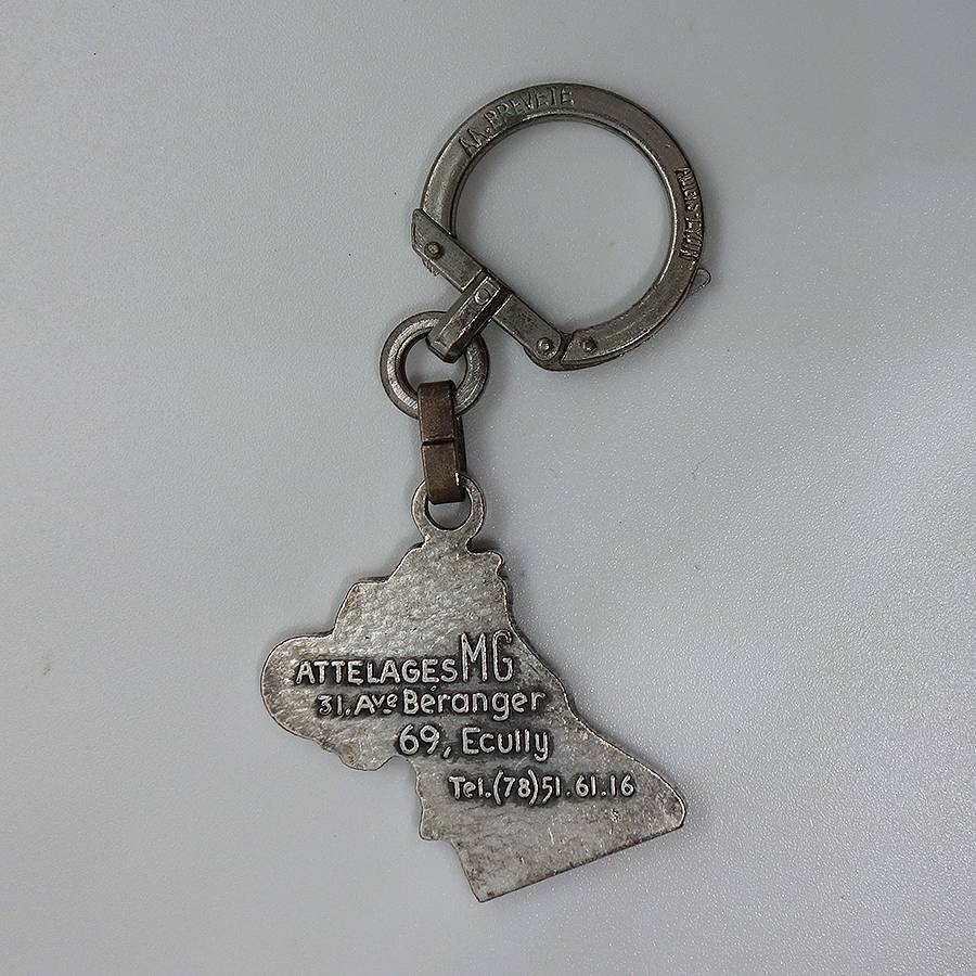 フランスで見つけた、ビンテージ フレンチ キーホルダー。 自動車の部品ATTELAGES MG。 AUGIS (オジス社)。 約3.6cm×約3.5cm(本体部分のみ) アンティーク物の為、表面に、擦れ・擦れ汚れ・小傷あります。
