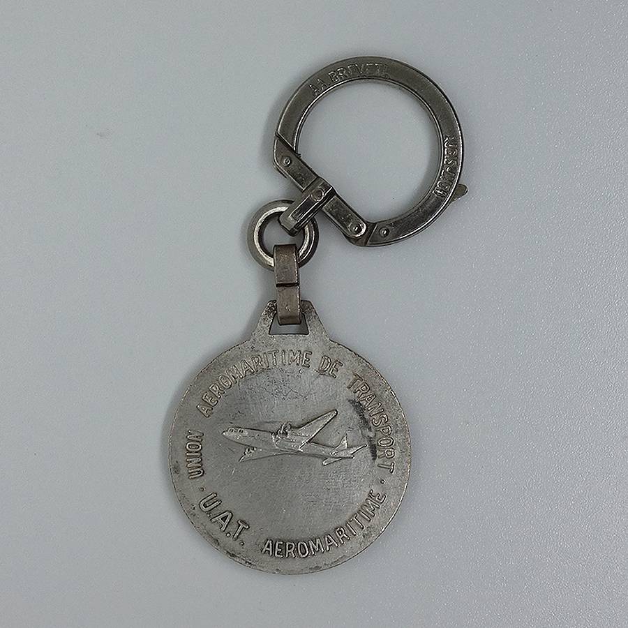 フランスで見つけた、ビンテージ フレンチ キーホルダー。 航空会社 UAT (Union Aeromaritime deTransport)。 AUGIS (オジス社)。 約3.5cm×約3.1cm(本体部分のみ) アンティーク物の為、表面に、擦れ・擦れ汚れ・色落ち・汚れ・小傷あります。