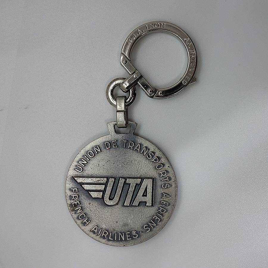 フランスで見つけた、ビンテージ フレンチ キーホルダー。 国際航空会社 UTA。 FIA LYON。 A.A.PATENTED 約4.0cm×約3.6cm(本体部分のみ) アンティーク物の為、表面に、擦れ・擦れ汚れ・汚れ・小傷あります。