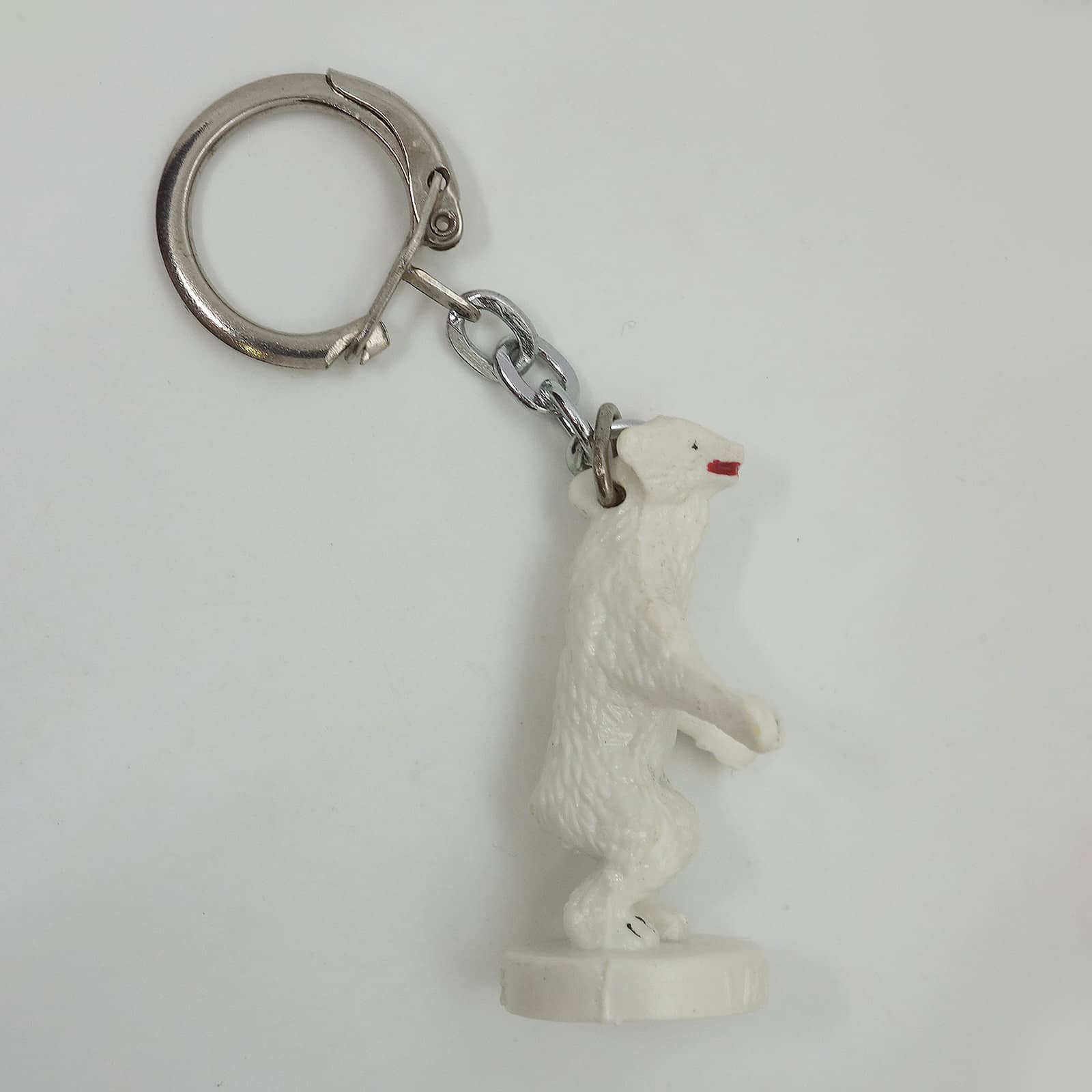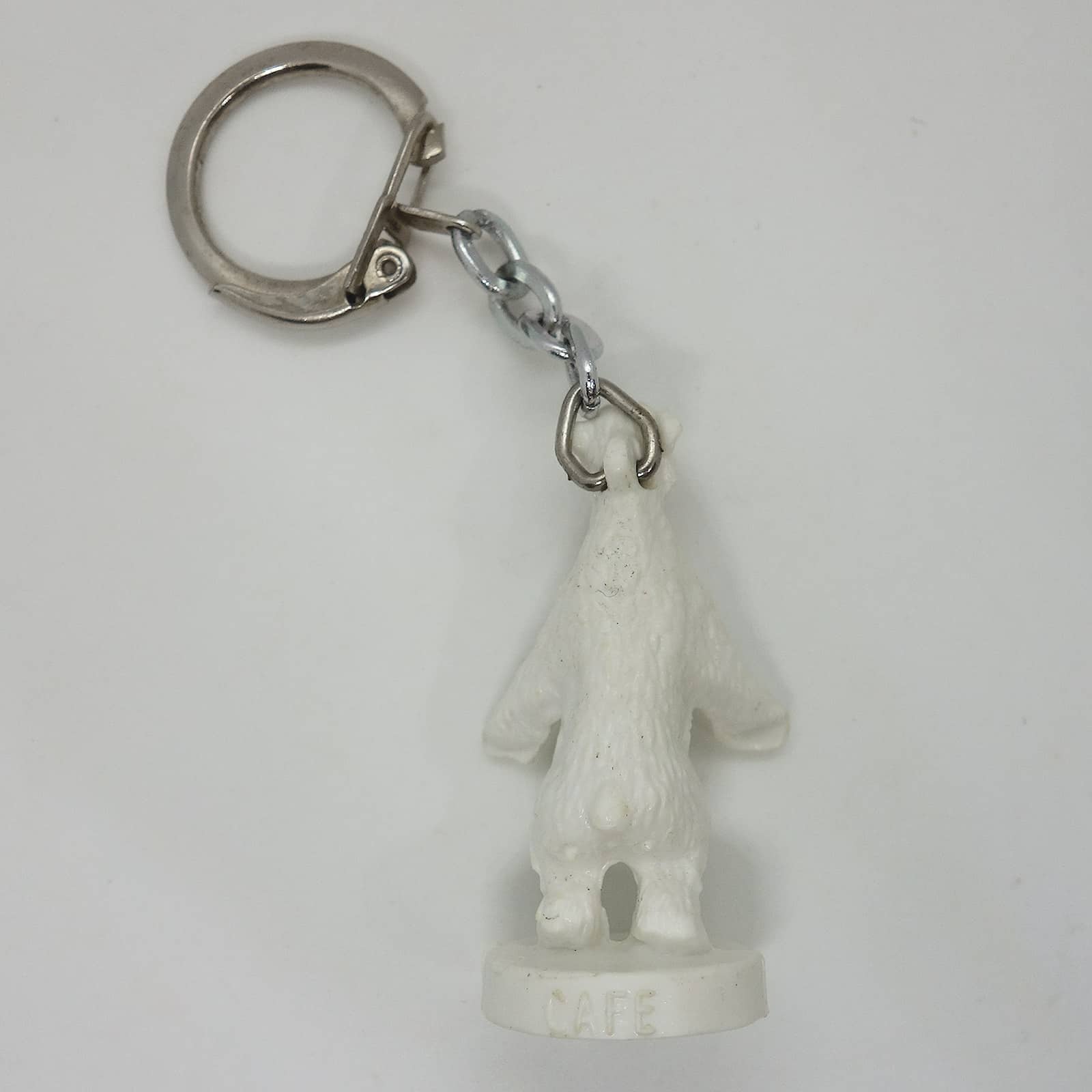 フランスで見つけた、ビンテージ フレンチ キーホルダー。 CAFE LABRADOR 白くま。 約4.7cm×約2.1cm 表面に、擦れ・擦れ汚れ・塗料の色剥げあります。