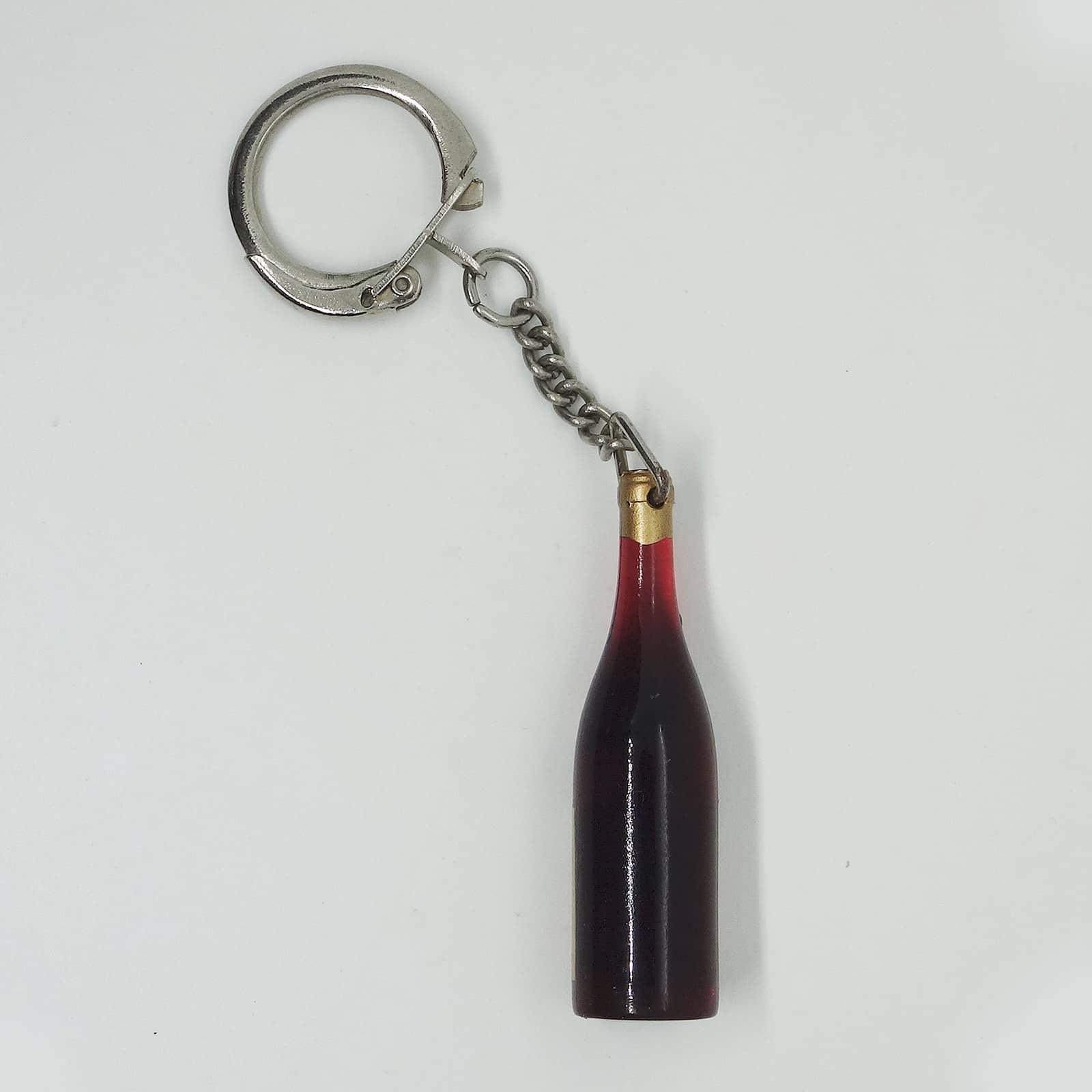 フランスで見つけた、ビンテージ フレンチ キーホルダー。 beaujolais ワイン ボトル型。 約4.8cm×約1.2cm 表面に、擦れ・擦れ汚れあります。