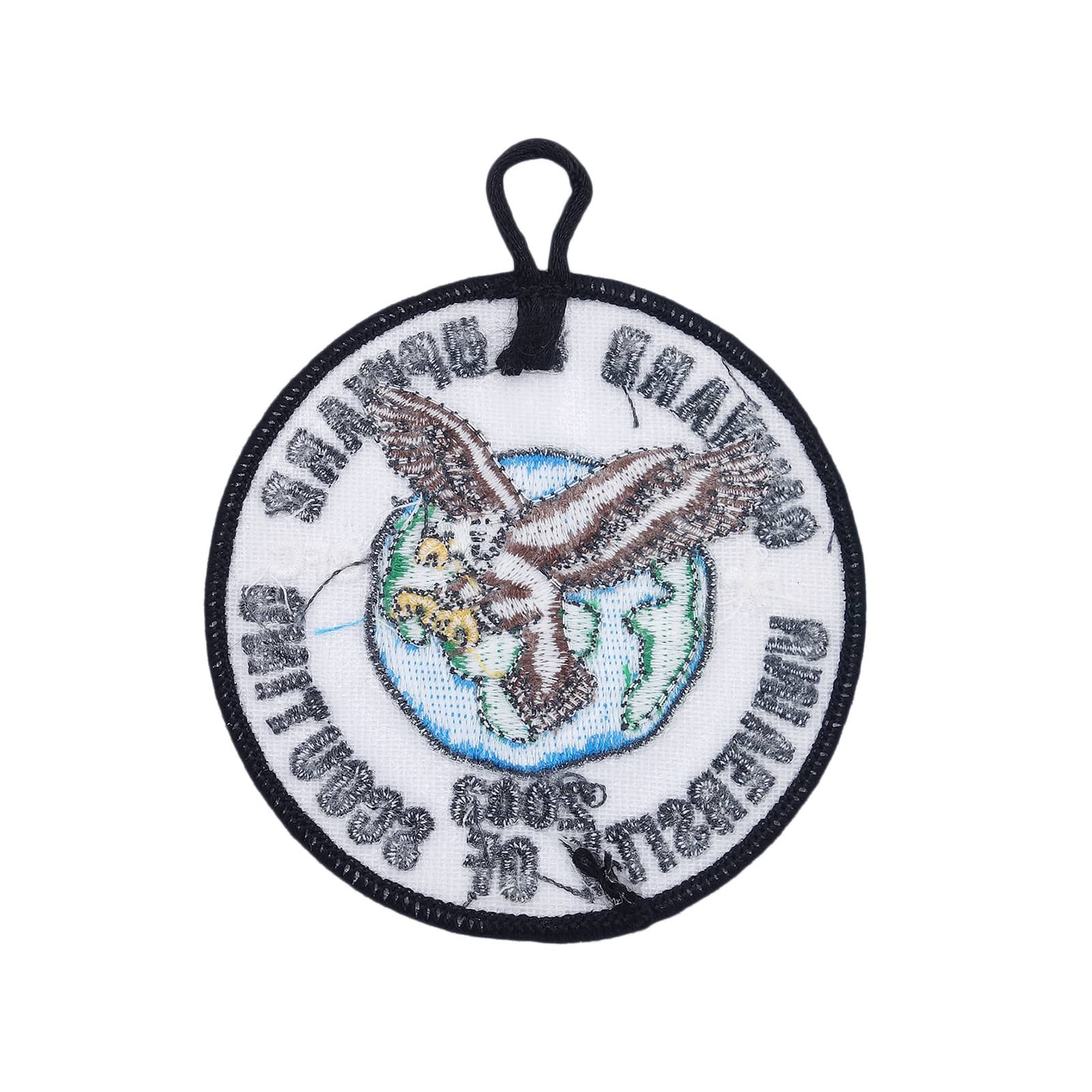 アメリカから入荷しました、ボーイスカウト ワッペン。 ONWARD & UPWARD UNIVERSITY OF SCOUTING。 縦 約8.8cm 横 約9.0cm 表面に、多少の擦れあります。