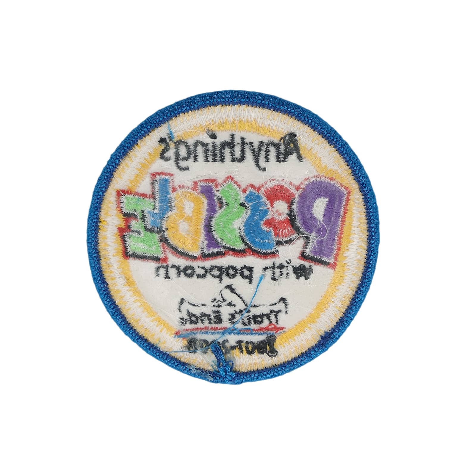 アメリカから入荷しました、ボーイスカウト ワッペン。 Anything's POSSIBLE with popcorn。 縦 約7.8cm 横 約7.8cm 表面に、多少の擦れあります。