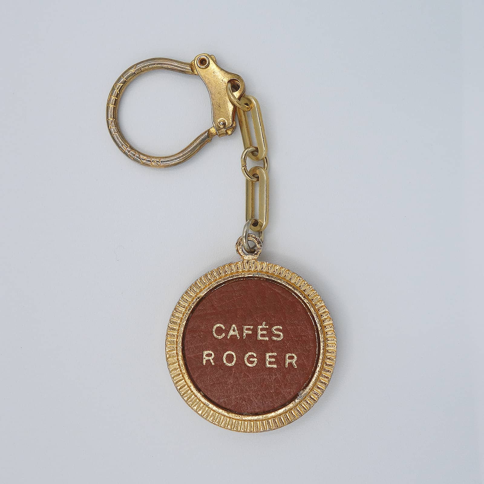 ヨーロッパで見つけた、ビンテージ キーホルダー。 CAFES ROGER。 MADE IN ITALY 約3.2cm×約3.3cm 表面に、擦れ・擦れ汚れ・多少の擦り傷あります。