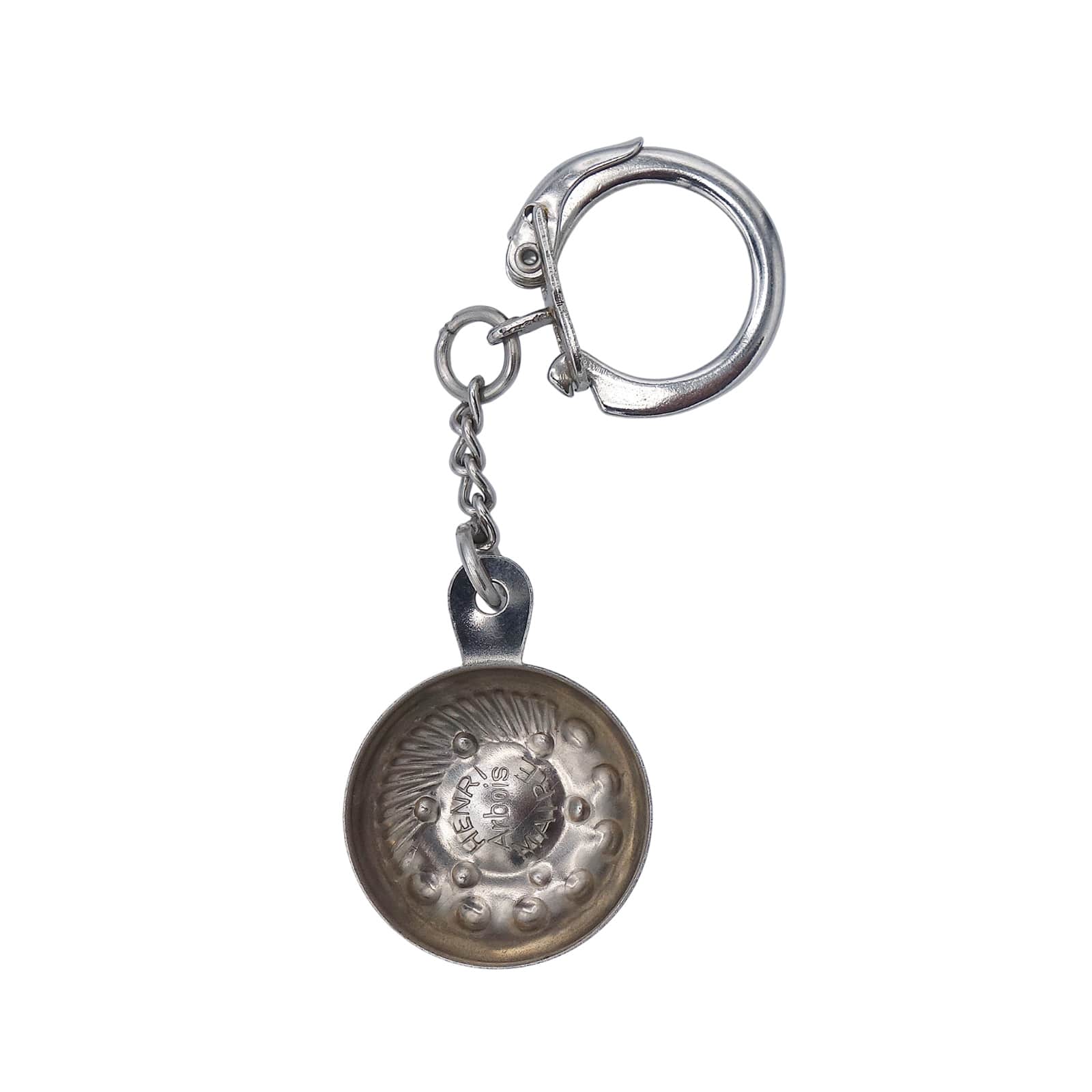 フランスで見つけた、ビンテージ フレンチ キーホルダー。 ワインメーカー HENRI MAIRE。 ソムリエやワイン造り手がワインの色や輝きをチェックするために使用されてきた「利き酒皿・タートヴァン」 型。 約3.4cm×約2.5cm 表面に、多少の擦れ・擦れ汚れあります。