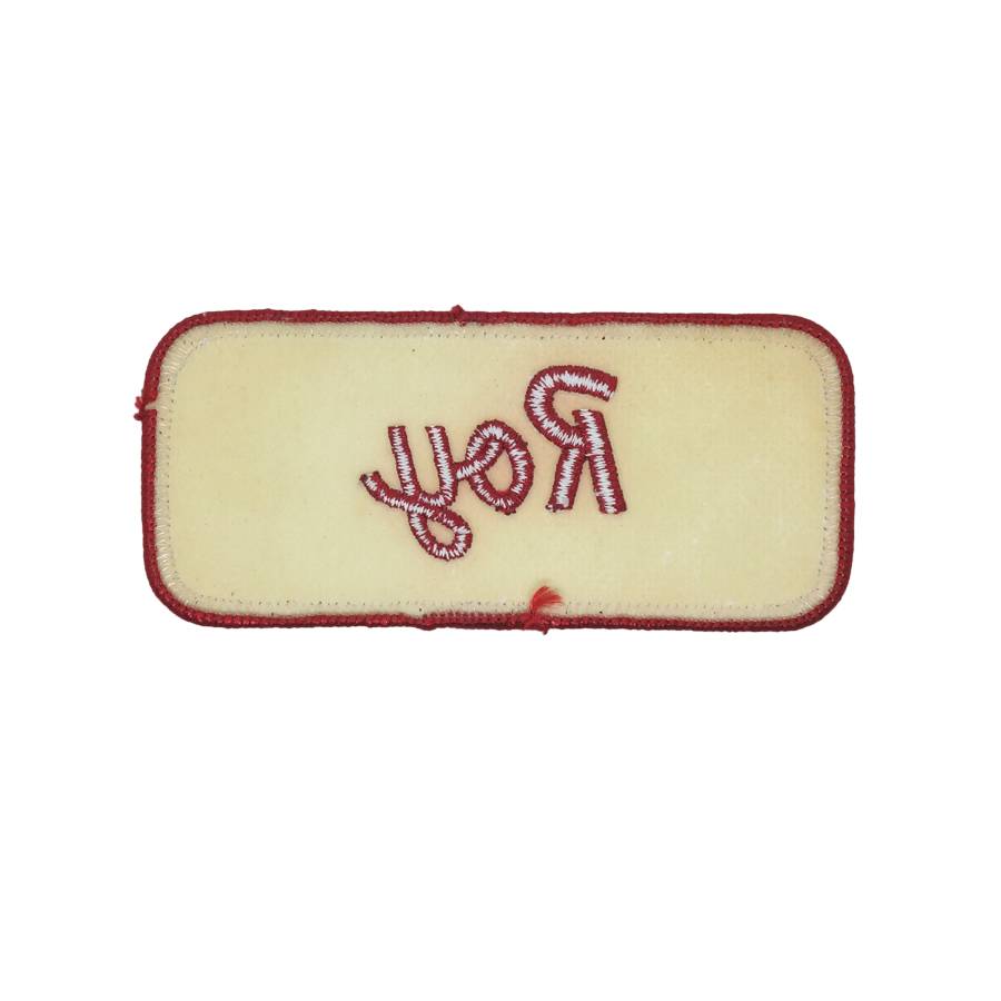 アメリカから入荷しました、ネーム ワッペン。 縦 約4.1cm 横 約9.2cm 表面に、擦れ・ヨレ・針穴ライン痕・多少の汚れ等あります。 若干ですが、周囲の端のステッチに細かなホツレがあります。