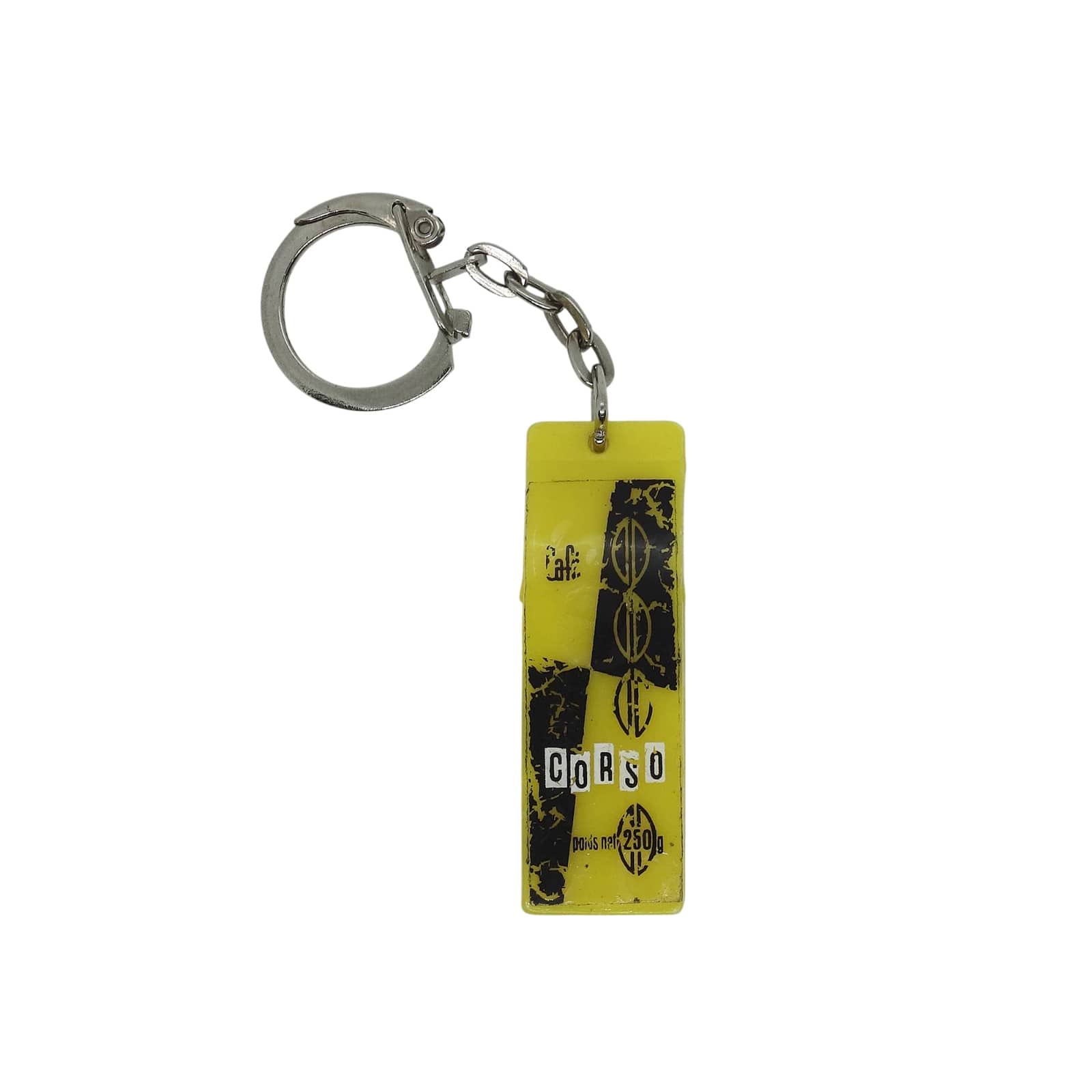 フランスで見つけた、ビンテージ フレンチ キーホルダー。 Cafe CORSO。 (珈琲のローカルブランドだと思います) 約5.0cm×約1.6cm 表面に、擦れ・擦れ汚れ・プリントに擦れ剥げあります。